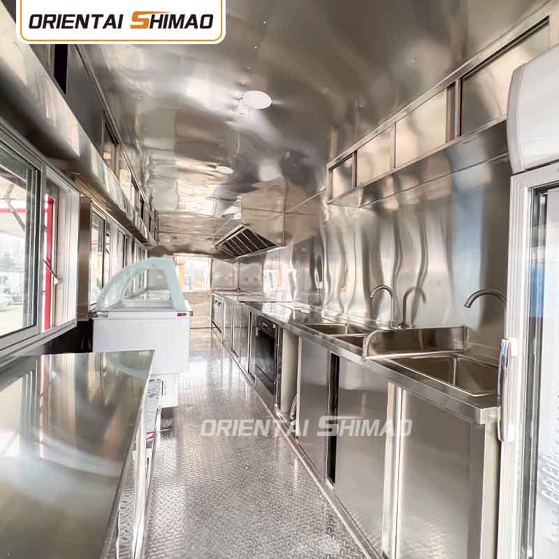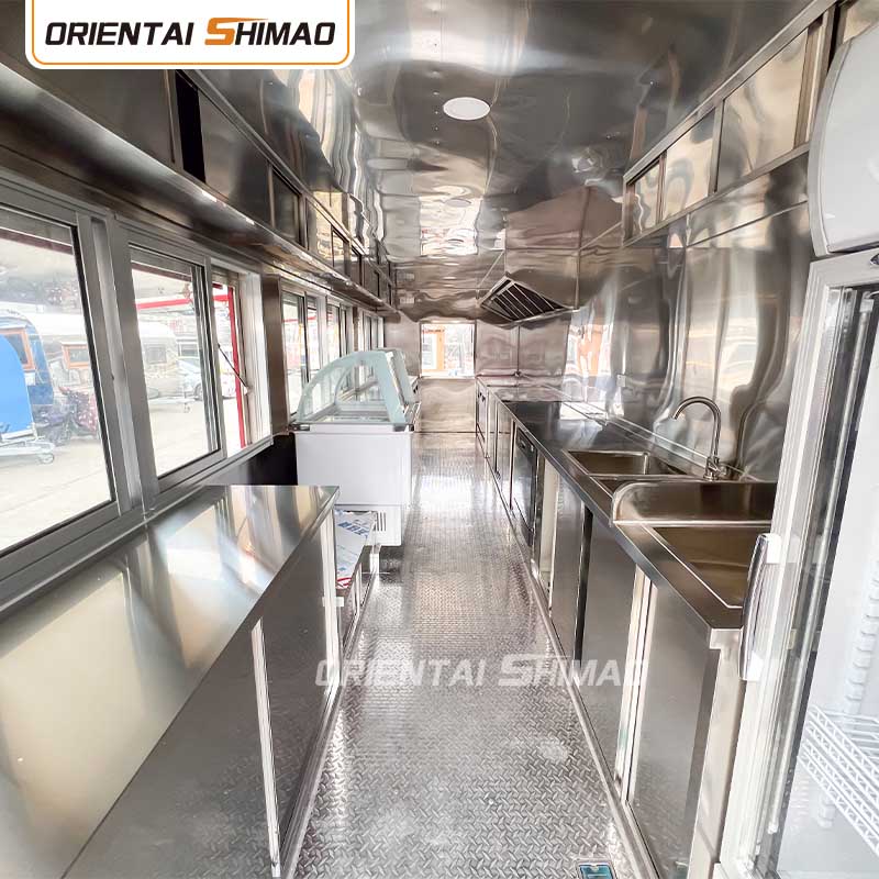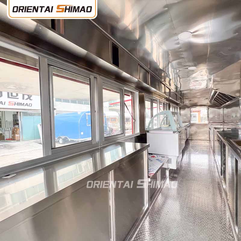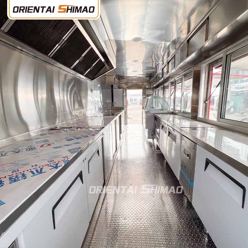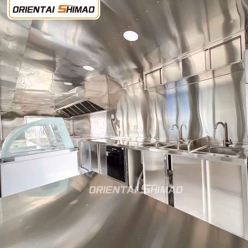 Til hovedmaterialet valgte vi højkvalitets 304 rustfrit stål, som er kendt for sin fremragende korrosionsbestandighed og fremragende holdbarhed, og som kan opretholde en stabil ydeevne under en række forskellige miljøforhold, hvilket sikrer, at vores Food Catering Trailers produkter kan bevare deres fremragende kvalitet og funktionalitet selv på lang sigt og stå over for en række udfordringer. 304 rustfrit ståls fremragende korrosionsbestandighed, så Lastbilen ikke er let at blive ramt af oxidation eller rust, hvilket i høj grad forlænger dens levetid. Den fremragende korrosionsbestandighed af 304 rustfrit stål gør lastbilen mindre modtagelig for oxidation eller rust, hvilket i høj grad forlænger deres levetid.