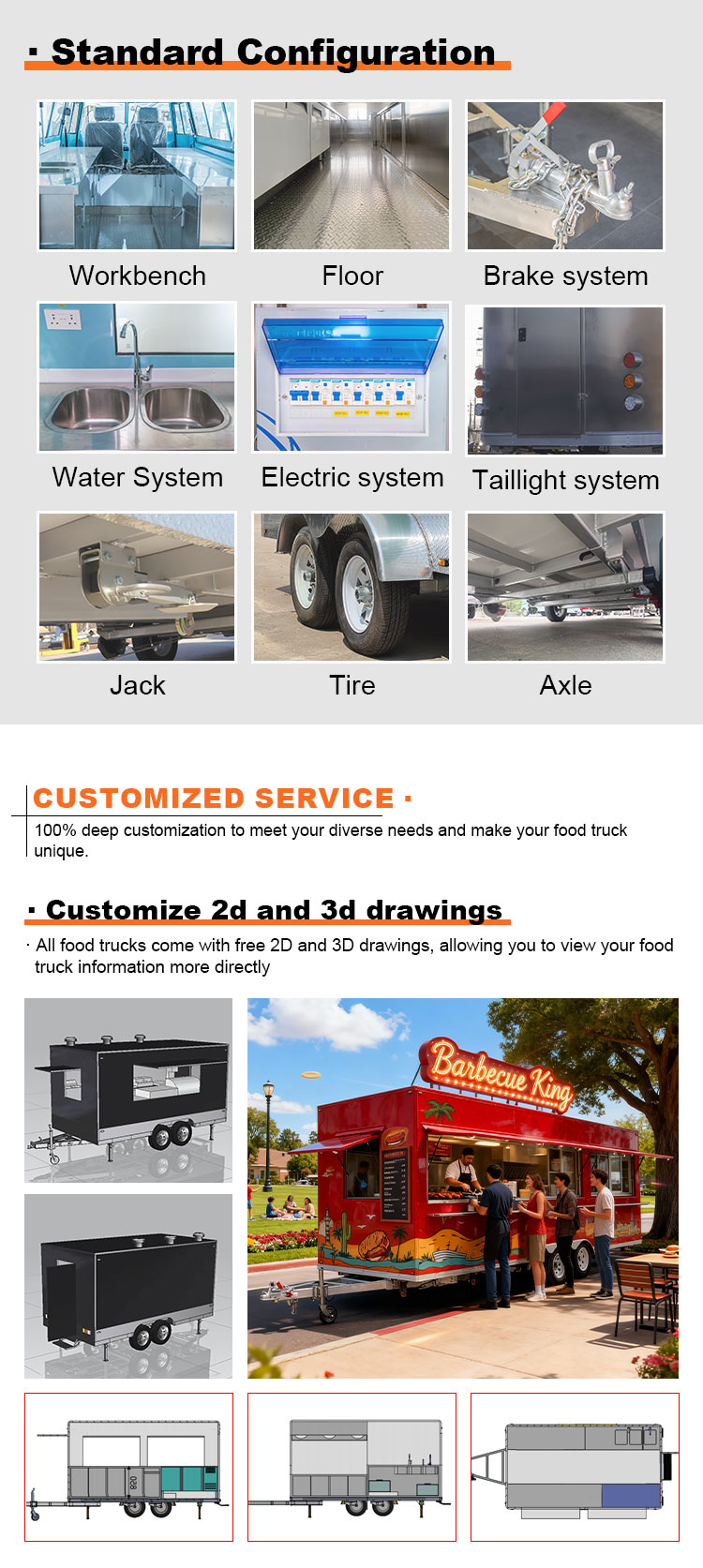 Food Truck Udstyr Kommercielt Køkkenudstyr Catering Mobil Food Trailer Food Truck