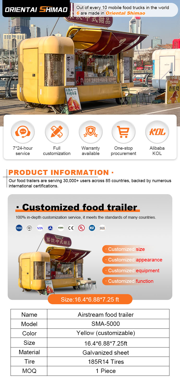 Vi kan tilbyde kaffevognsmobilcertificeringer: DOT,CE,SGS,SCI,ISO,COC,