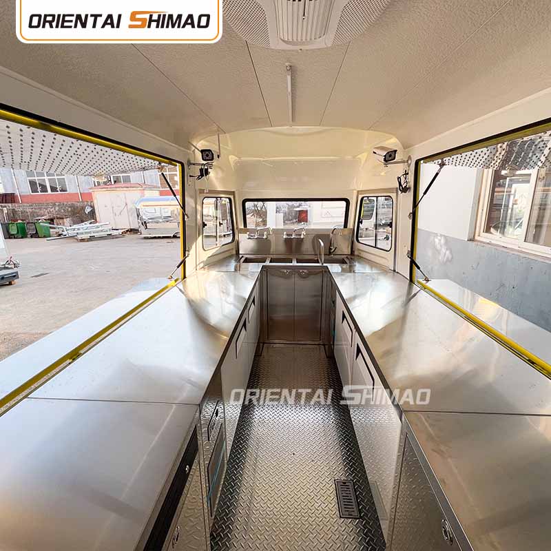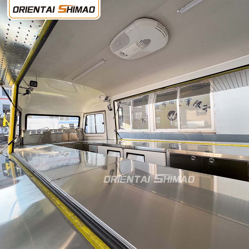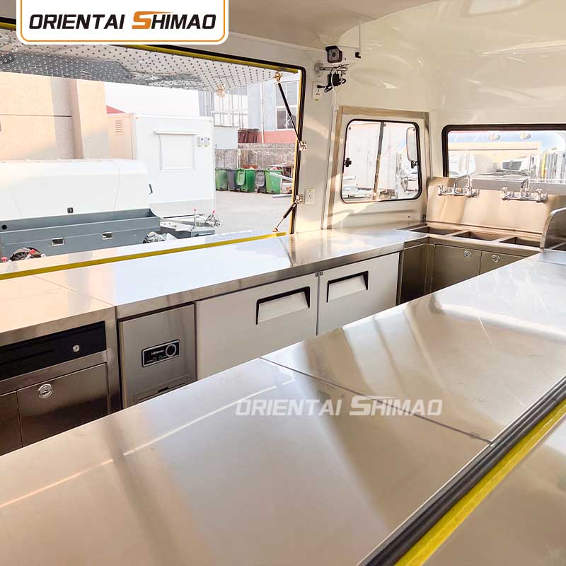 Alsidighed: For at imødekomme behovene i forskellige catering-scenarier er en række professionelt madlavnings- og opbevaringsudstyr indbygget i køretøjet, lige fra køkkenredskaber til opbevaringsplads til ingredienser, som kan imødekomme behovene for diversificerede og højeffektive catering-operationer og i høj grad forbedre den operationelle effektivitet, uanset om det er til madlavning på stedet eller levering af fastfood.