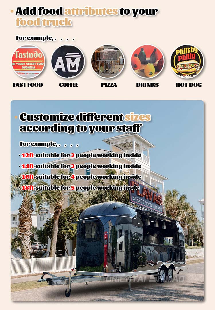 Hvad angår tilbehørets materiale, insisterer vi også på et udvalg af høj kvalitet, herunder rustfrit stålhåndtag, hængsler og hjul og andre nøglekomponenter, som alle er lavet af materialer af høj kvalitet. Dette design sikrer ikke kun den overordnede konsistens og æstetik af Concession Trailer til musikfestivaler, men forbedrer også dens holdbarhed og pålidelighed. Tilbehørets fremragende ydeevne gør det muligt for Concession Trailer til musikfestivaler at være mere stabil og jævn i brugsprocessen og reducerer også vedligeholdelses- og udskiftningsomkostningerne forårsaget af beskadigelse af tilbehøret, hvilket giver brugerne en mere problemfri og økonomisk brugsoplevelse.