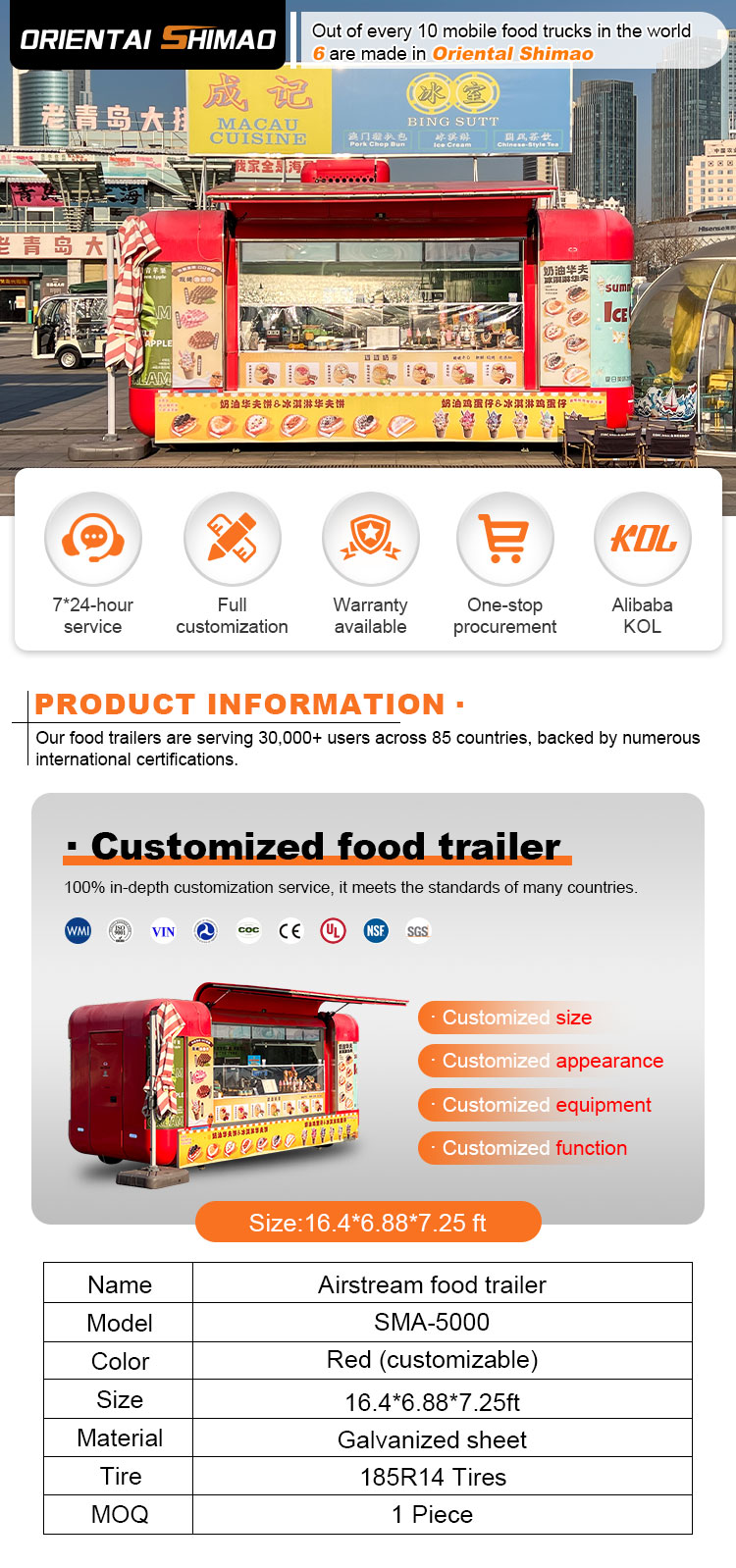 Vi kan tilbyde Food Catering Trailers certificeringer: DOT, CE, SGS, SCI, ISO, COC,