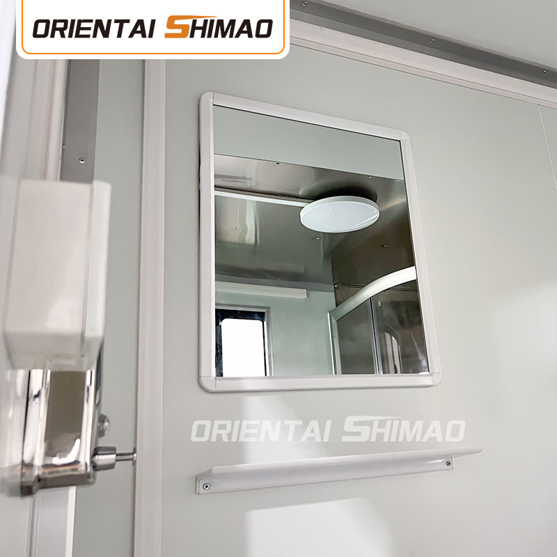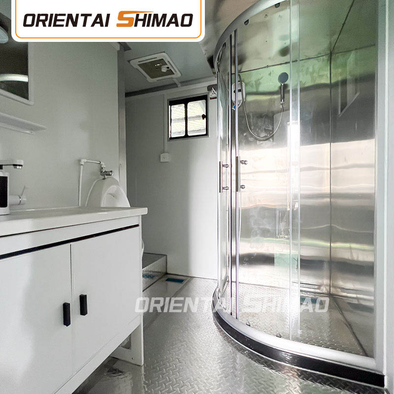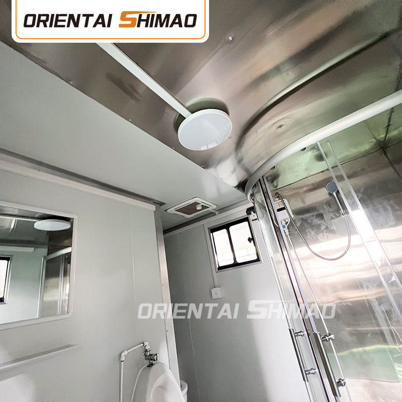 Indvendige materialer: Alle faciliteter inde i bilen er lavet af miljøvenlige materialer, i overensstemmelse med internationale hygiejnestandarder. Væggene er lavet af vandtætte og anti-mugmaterialer, som er nemme at rengøre og vedligeholde. Gulvet er lavet af skridsikkert PVC-materiale, som ikke kun er vandtæt og skridsikkert, men også har gode antibakterielle egenskaber for at beskytte brugernes sikkerhed.