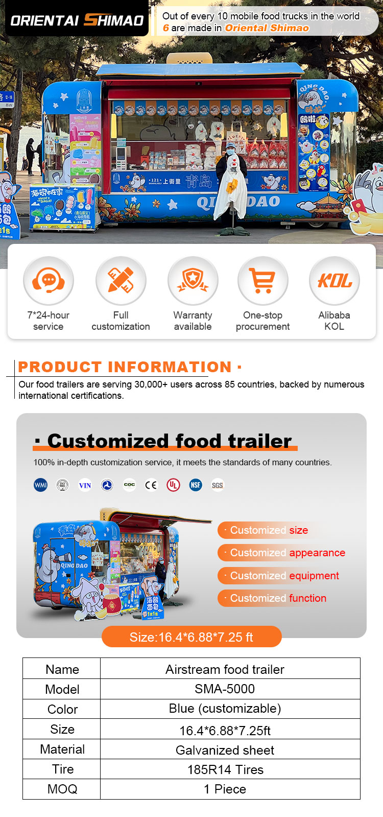 Vi kan tilbyde Food Catering Trailers certificeringer: DOT, CE, SGS, SCI, ISO, COC,