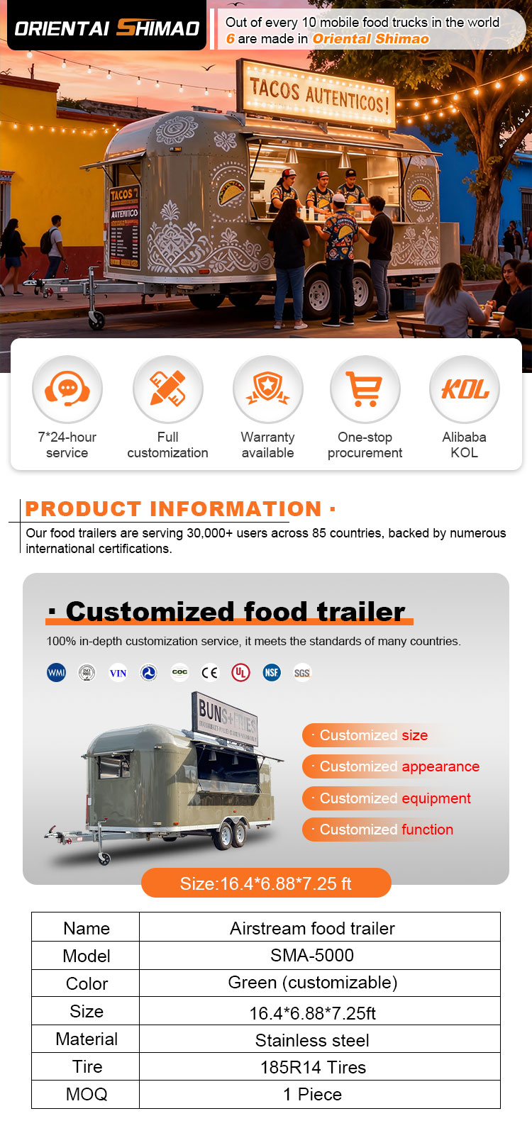Vi kan tilbyde Food Catering Trailers certificeringer: DOT, CE, SGS, SCI, ISO, COC,