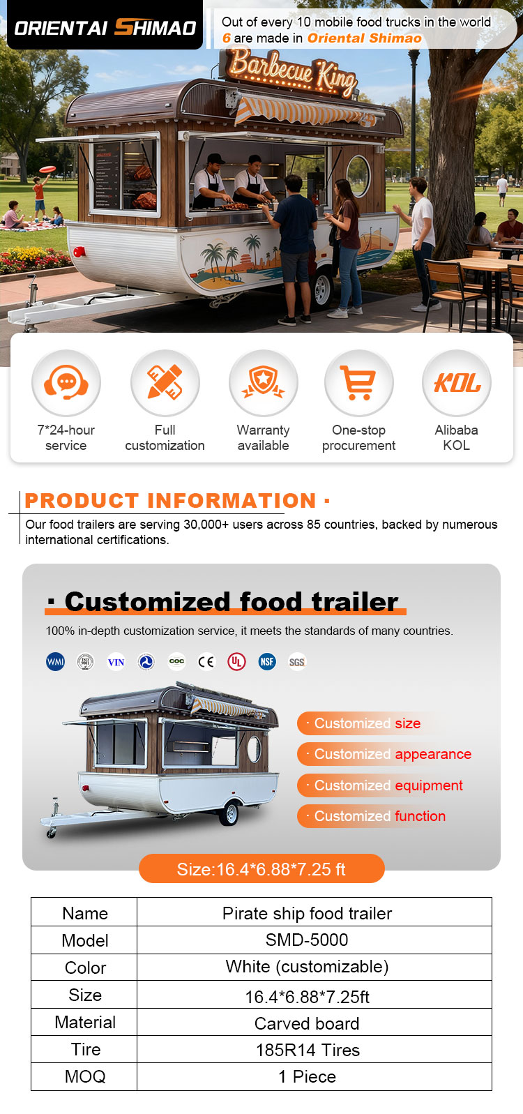 Vi kan tilbyde Food Catering Trailers certificeringer: DOT, CE, SGS, SCI, ISO, COC,