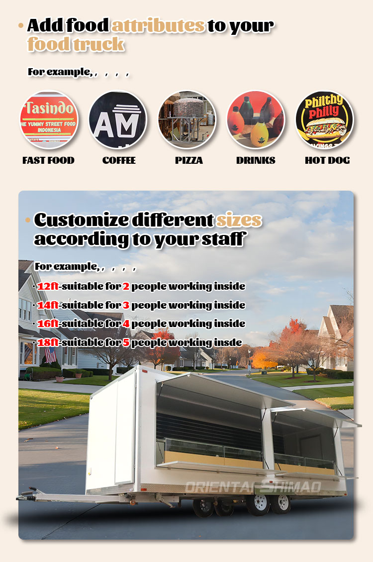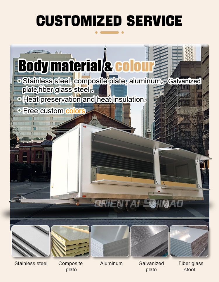Hos Oriental Shimao Food Trailer rustfrit stål forstår vi de unikke behov og personaliserede forfølgelser for hver af vores kunder, så vi er forpligtet til at levere et komplet udvalg af dybdegående tilpasningstjenester for at sikre, at enhver madvogne passer perfekt til din forretningsfilosofi og brand image. Følgende er en detaljeret udvidelse af vores vigtigste produkttilpasningstjenester: