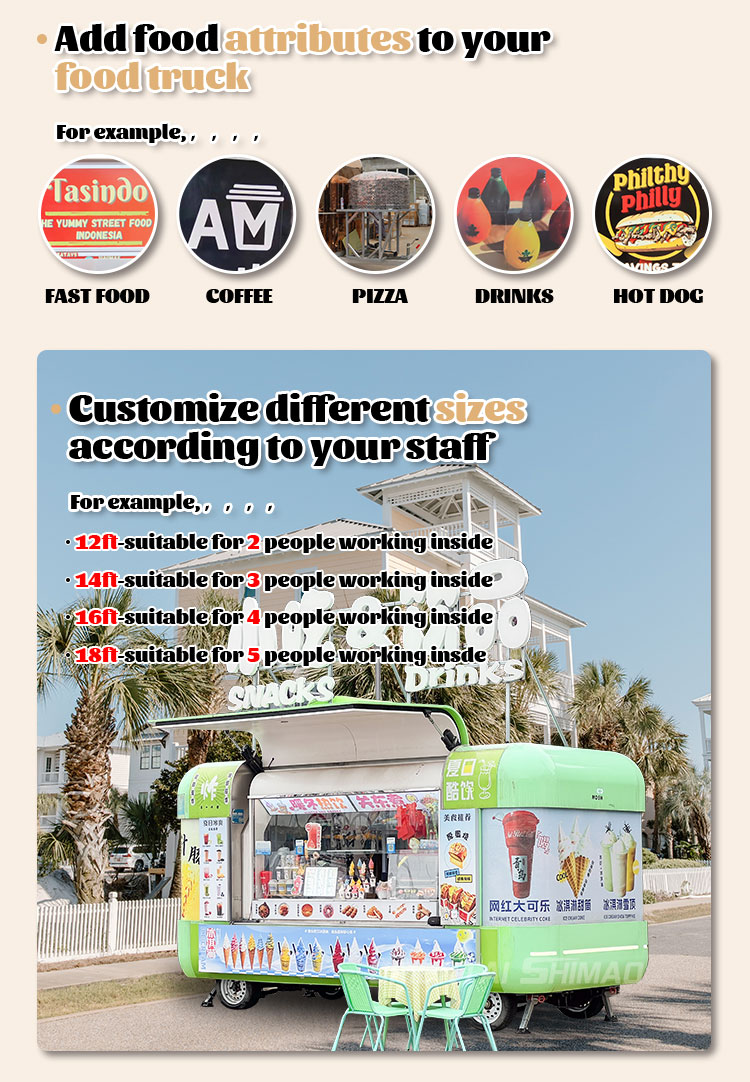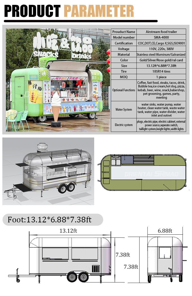 Vi kan tilbyde madtrailer med fuld køkkencertificering: DOT, CE, SGS, SCI, ISO, COC,