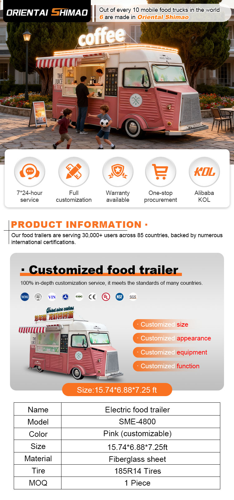 Vi kan tilbyde Trailer Food Truck certificeringer: DOT, CE, SGS, SCI, ISO, COC,