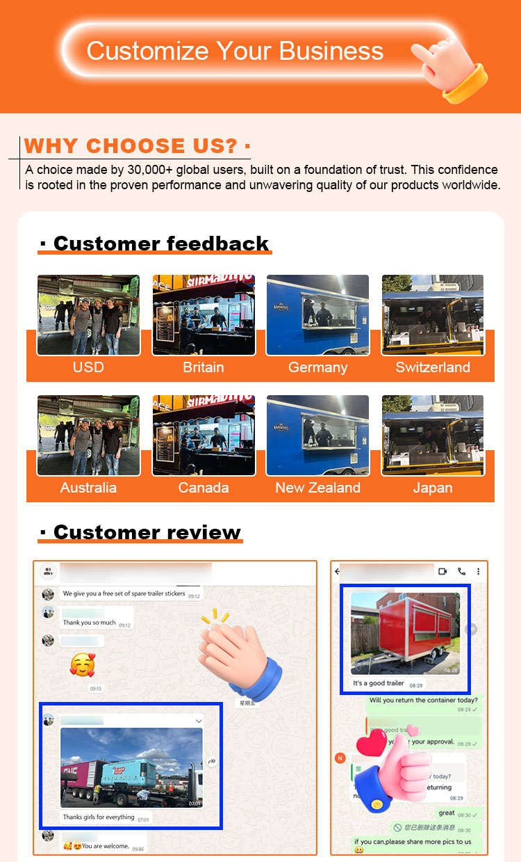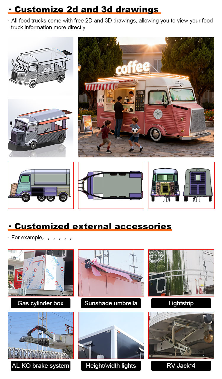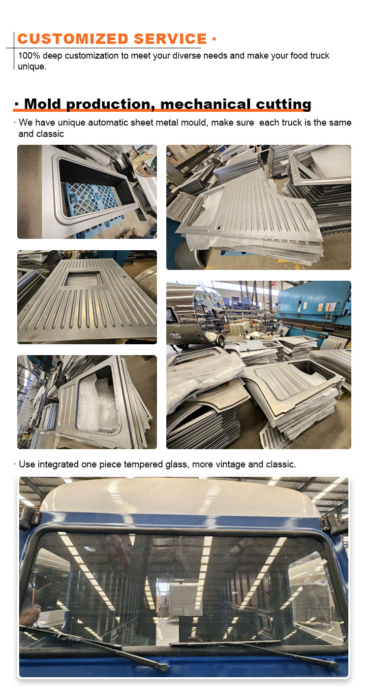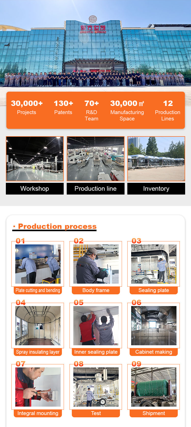 Til hovedmaterialet valgte vi højkvalitets 304 rustfrit stål, som er kendt for sin fremragende korrosionsbestandighed og fremragende holdbarhed, og som kan opretholde en stabil ydeevne under en række forskellige miljøforhold, hvilket sikrer, at vores Trailer Food Truck-produkter kan bevare deres fremragende kvalitet og funktionalitet selv på lang sigt og stå over for en række udfordringer. 304 rustfrit ståls fremragende korrosionsbestandighed, så Lastbilen ikke er let at blive ramt af oxidation eller rust, hvilket i høj grad forlænger dens levetid. Den fremragende korrosionsbestandighed af 304 rustfrit stål gør lastbilen mindre modtagelig for oxidation eller rust, hvilket i høj grad forlænger deres levetid.