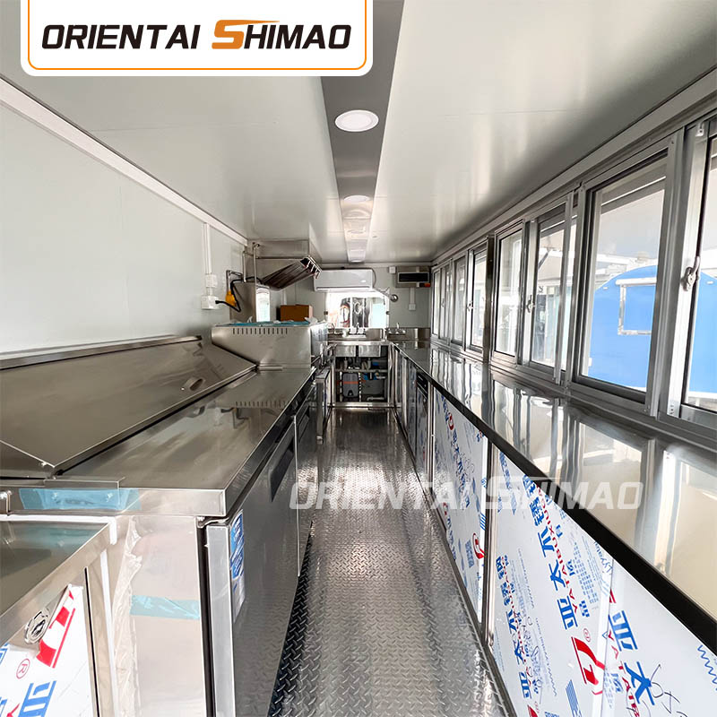Størrelsestilpasning: Ud over de traditionelle grænser bryder vi størrelsesrammen for konventionelle food trucks og giver dig ubegrænsede muligheder for størrelsestilpasningsløsninger. Uanset om du leder efter en mini food truck, der er lille og udsøgt, nem at rejse gennem byens gyder, eller en luksus mobil restaurant, der ønsker at have en rummelig plads til at rumme flere kunder og udstyr, kan vi præcist måle og omhyggeligt designe i henhold til dine specifikke behov for at skabe en food truck størrelse, der opfylder de faktiske behov og er fuld af kreativitet.