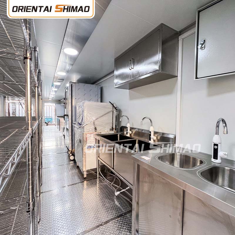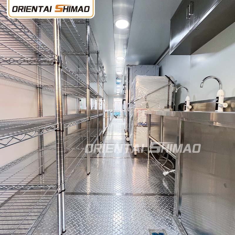 Indvendigt layout: Rimelig planlægning af køkken, spisestue, opbevaringsområde og andre områder for at sikre maksimal udnyttelse af pladsen. Samtidig oprettes forskellige funktionsområder efter forretningsbehov, såsom produktionsområde, varmeområde, salgsområde osv., for at lette driften og forbedre driftseffektiviteten.