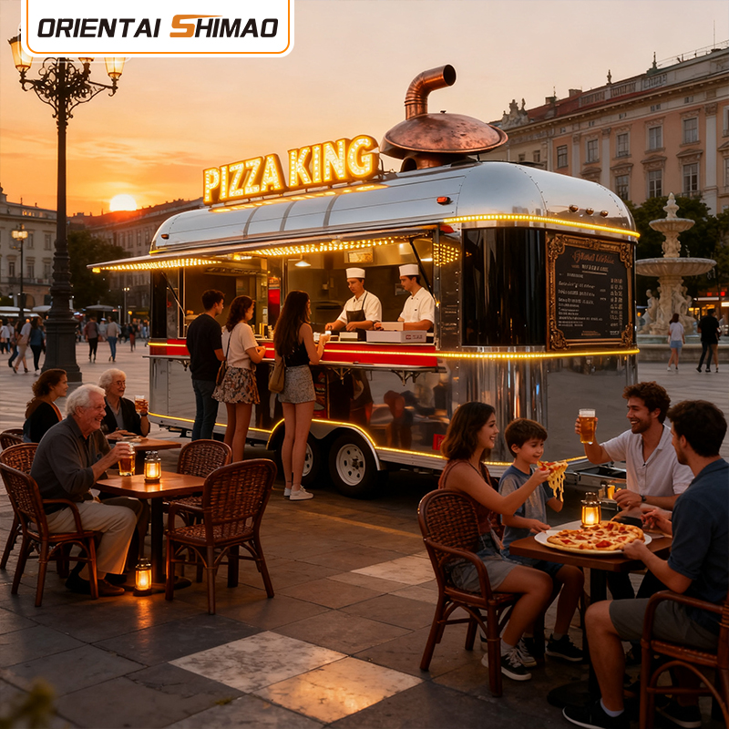 I: Breeze Refreshment Trailer er et af flagskibsprodukterne hosOrientalsk Shimao. Vi bruger forskellige materialer og finish, der passer til det lokale driftsmiljø og kundebranding. For eksempel bruger vi korrosionsbeskyttelsesmaterialer af marinekvalitet til trailere, der er bestemt til kystområder. I mellemtiden kan layout og udstyr optimeres baseret på den primære menu, hvilket sikrer både effektivitet og holdbarhed for din fødevarevirksomhed.