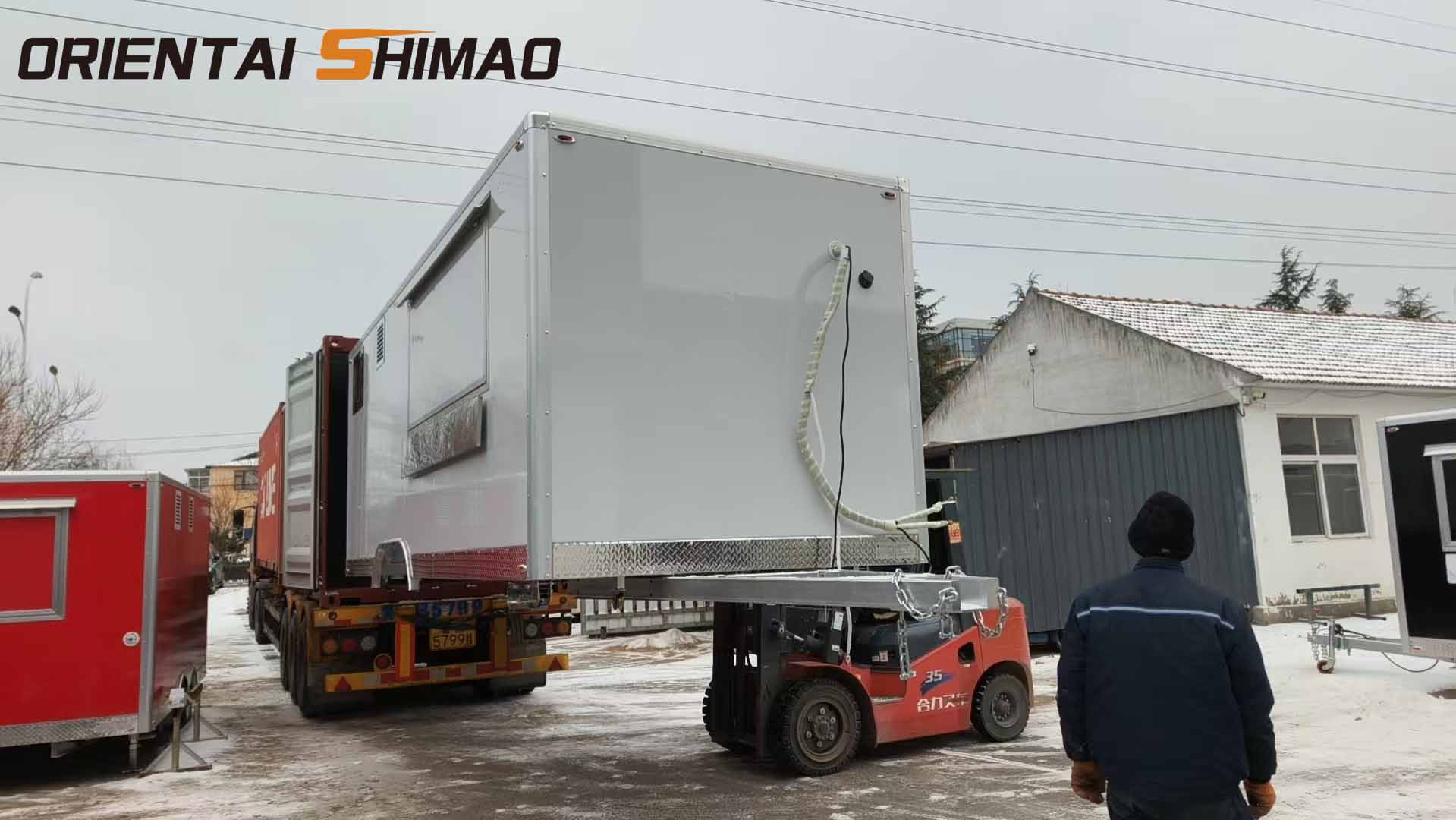 Vi er glade for at kunne annoncere den vellykkede forsendelse af en tilpasset madtrailer fra vores produktionsanlæg. Som vist på indlæsningsbilledet på stedet blev enheden omhyggeligt håndteret og sikkert læsset ved hjælp af professionelt løfteudstyr for at sikre sikkerhed og produktintegritet under hele forsendelsesprocessen. Denne madtrailer blev fremstillet under strenge kvalitetskontrolstandarder, med en robust struktur og præcis finish, hvilket afspejler vores forpligtelse til at levere pålidelige og højkvalitets mobile fødevareløsninger til globale kunder. Forsendelsen markerer endnu en vigtig milepæl i vores effektive produktions- og leveringskapacitet, hvilket forstærker vores dedikation til levering til tiden og kundetilfredshed.