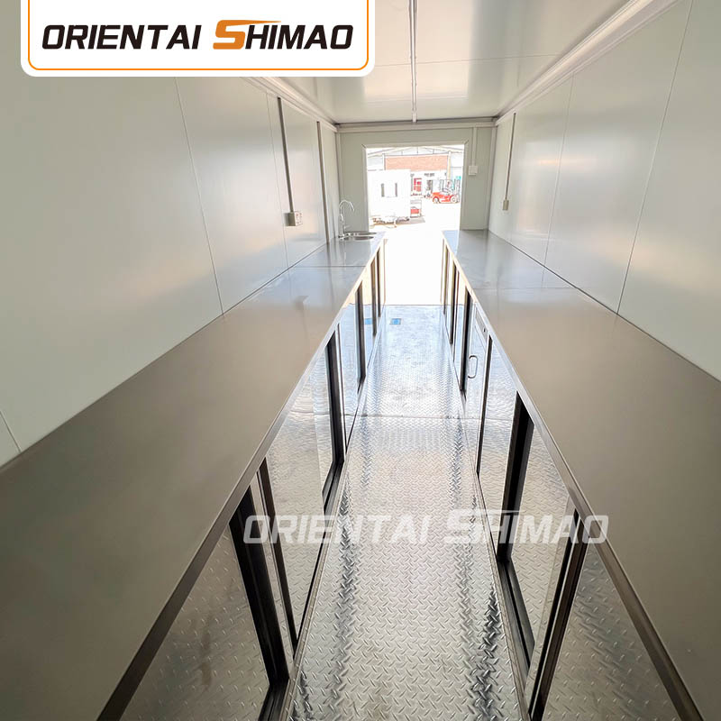 Størrelsestilpasning: Ud over de traditionelle grænser bryder vi størrelsesrammen for konventionelle food trucks og giver dig ubegrænsede muligheder for størrelsestilpasningsløsninger. Uanset om du leder efter en mini food truck, der er lille og udsøgt, nem at rejse gennem byens gyder, eller en luksus mobil restaurant, der ønsker at have en rummelig plads til at rumme flere kunder og udstyr, kan vi præcist måle og omhyggeligt designe i henhold til dine specifikke behov for at skabe en food truck størrelse, der opfylder de faktiske behov og er fuld af kreativitet.