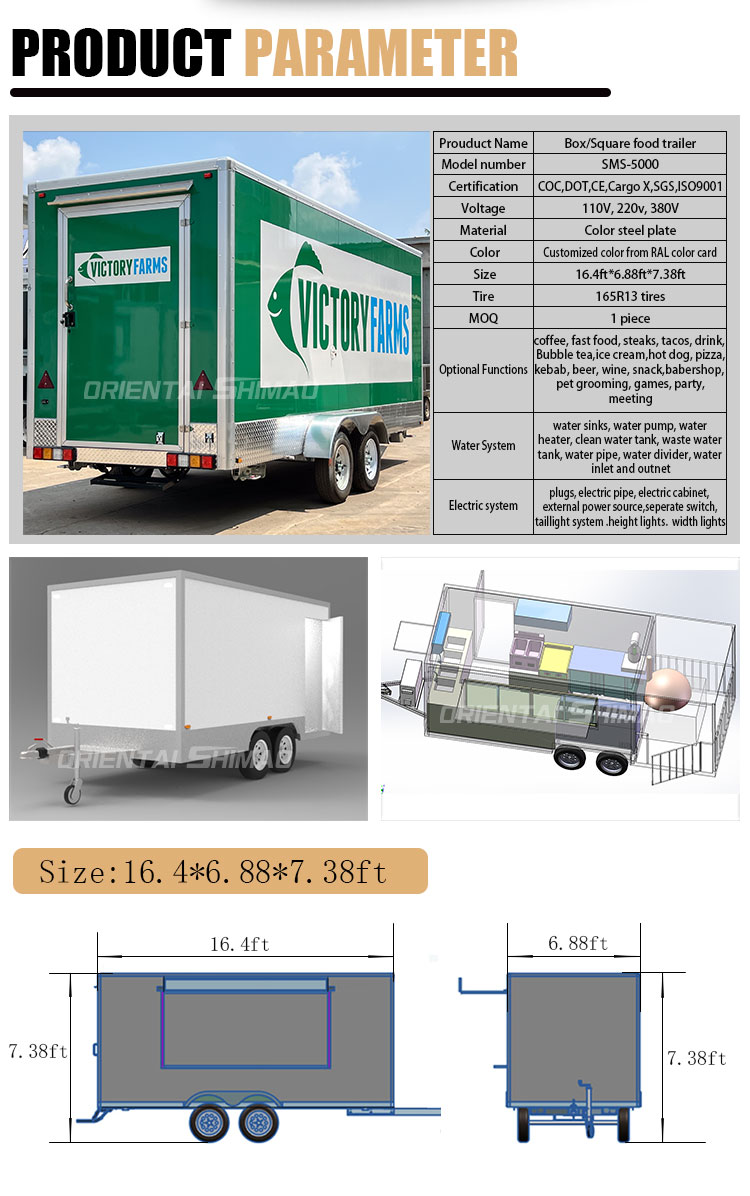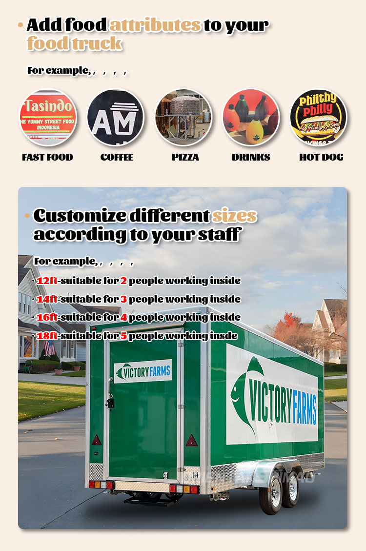 Andre skræddersyede ydelser: Udover ovenstående skræddersyede ydelser, er vi åbne og tager gerne imod enhver kreativitet og ideer, du måtte have. Uanset om du ønsker at tilføje specielle dekorationer til din food truck, forbedre indretningen eller udforske andre innovative designs, vil vi kommunikere med dig i dybden, lytte til dine behov og give dig de mest professionelle råd og løsninger. Vi tror på, at vi gennem fælles indsats og udforskning vil være i stand til at skabe en mobil restaurant, der imødekommer markedets efterspørgsel og er fuld af personlighed.