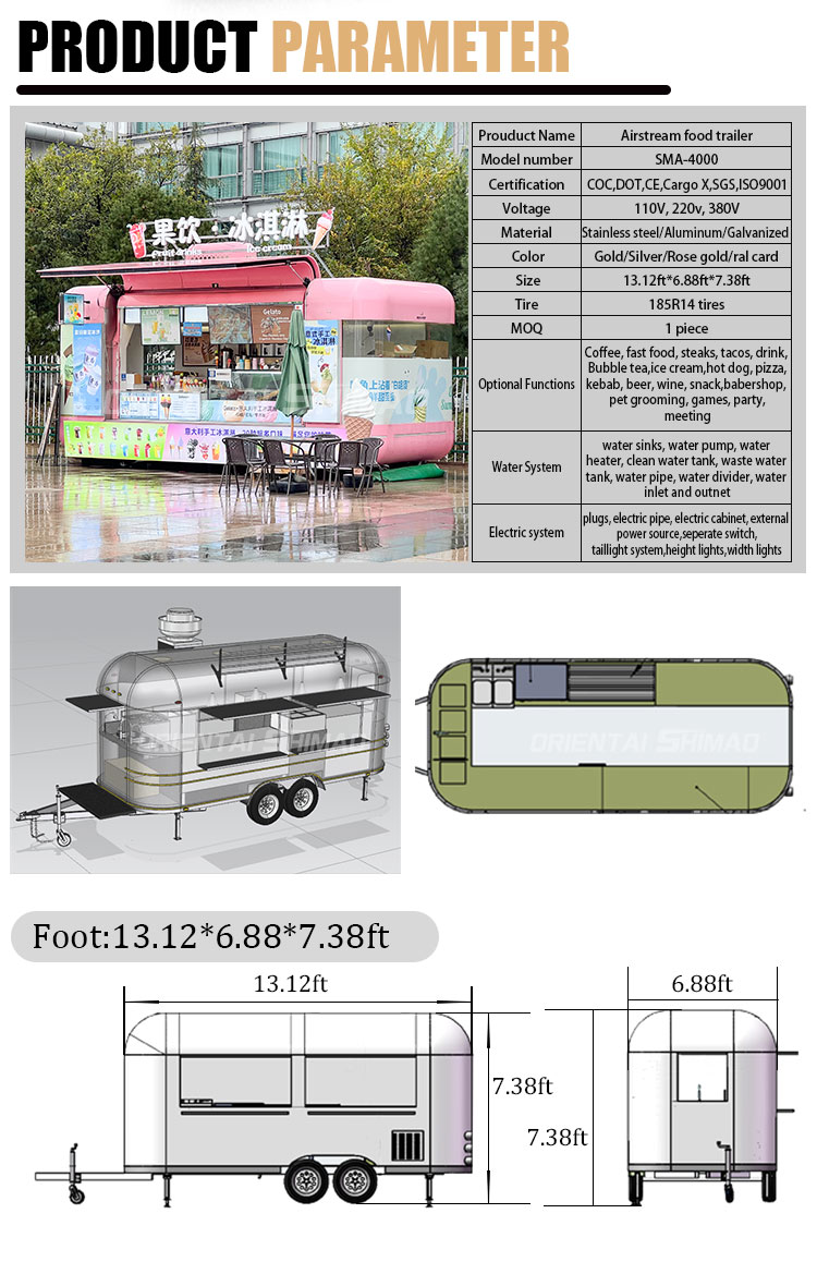 Til hovedmaterialet valgte vi højkvalitets 304 rustfrit stål, som er kendt for sin fremragende korrosionsbestandighed og fremragende holdbarhed, og som kan opretholde en stabil ydeevne under en række forskellige miljøforhold, hvilket sikrer, at vores Pizza Trailer-produkter kan bevare deres fremragende kvalitet og funktionalitet selv på lang sigt og står over for en række udfordringer. 304 rustfrit ståls fremragende korrosionsbestandighed, så Lastbilen ikke er let at blive ramt af oxidation eller rust, hvilket i høj grad forlænger dens levetid. Den fremragende korrosionsbestandighed af 304 rustfrit stål gør lastbilen mindre modtagelig for oxidation eller rust, hvilket i høj grad forlænger deres levetid.