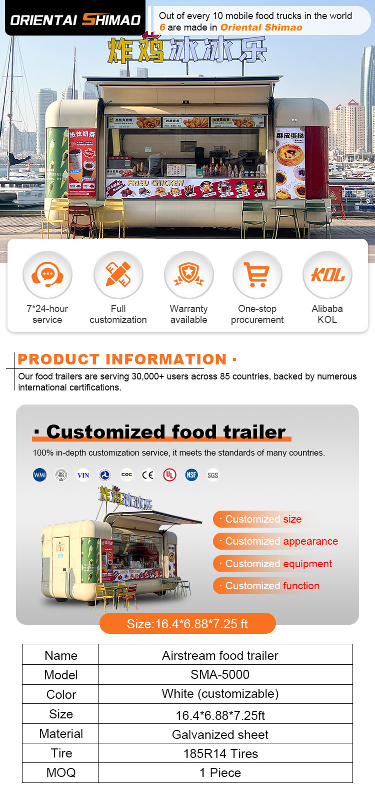 Vi kan tilbyde Pizza Trucks certificeringer: DOT, CE, SGS, SCI, ISO, COC,